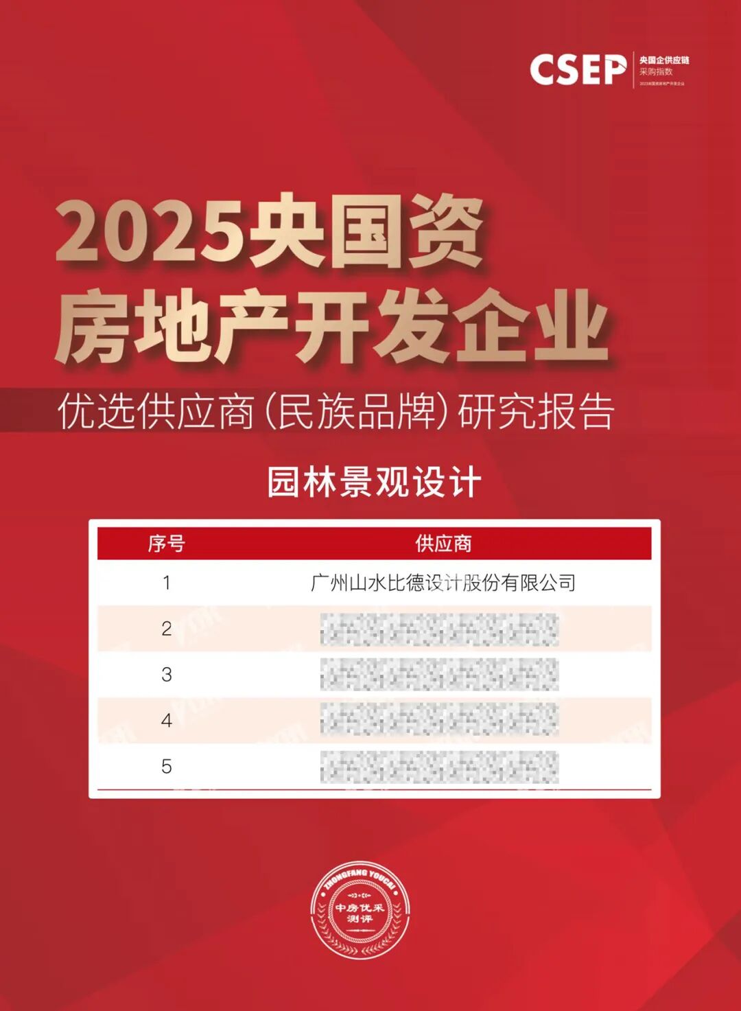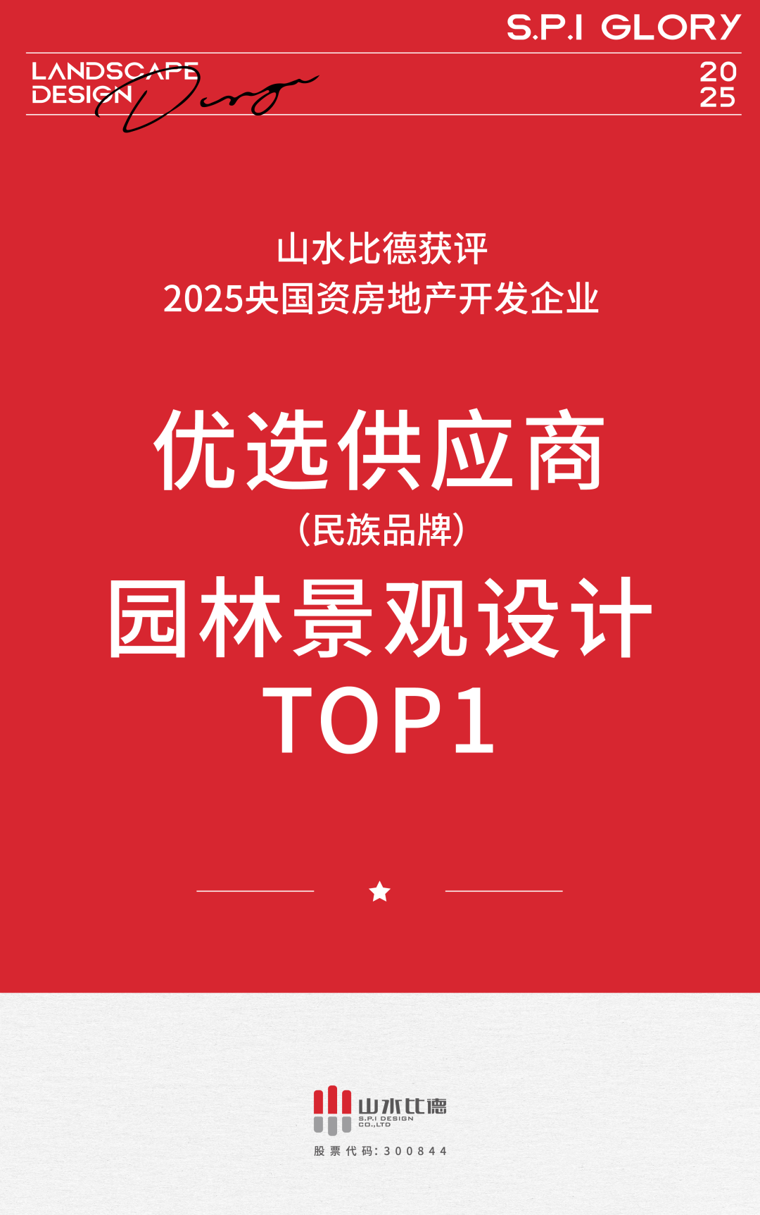 近日,由中房优采测评的《2025央国资房地产建造企业优选供应商(民族品牌)询查论述》发布。山水比德(300844)凭借超卓贪图力、编削产物力与可合手续推行,获评央国资房地产建造企业民族品牌“优选供应商”园林景不雅贪图TOP1。
