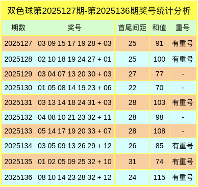 上期开奖:双色球第2025136期奖号为:08、10、14、23、28、32 + 12。