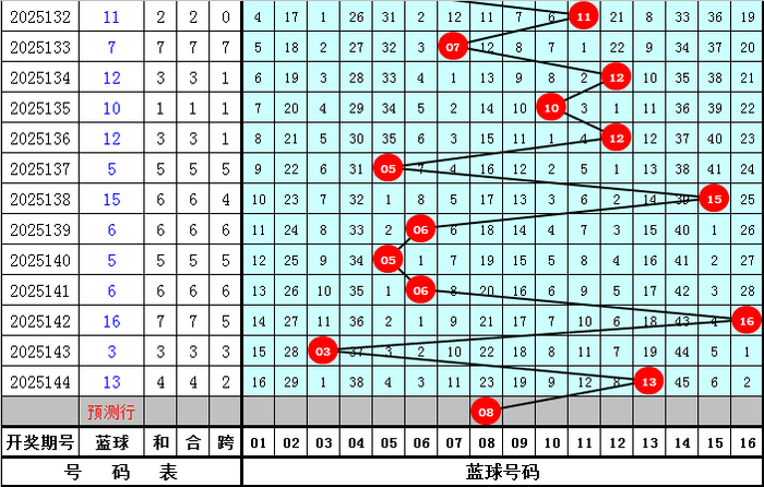 红三区(23-33):上期该区走温,开出2个红球,该区最近10期红球个数漫衍为:2、3、3、3、2、1、0、3、1、2,共开出20个红球,出号比例与表面个数基本捏平,本期珍惜红三区转冷,防该区断区。